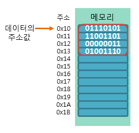 예를 들어 int 형 데이터는 4바이트를 가지지만, int 형 데이터의 주소값은 시작 주소 1바이트 만을 가리킴